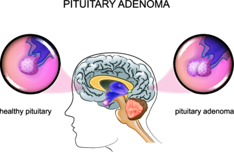 - опухоль гипофиза, секретирующая излишек адренокортикотропного гормона (АКТГ), или гипофизарно-зависимая форма синдрома, или болезнь Иценко-Кушинга (70% случаев);