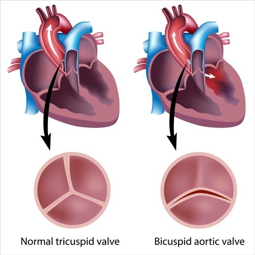 - врожденными дефектами структур сердца (развитием 1-2- или 4-х створчатого клапана аорты, аномалии межпредсердной перегородки);